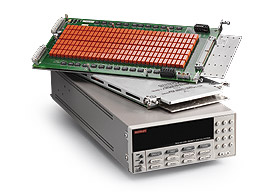 Each Model 7002-HD-MUX1 Differential Quad 1x40 Multiplexing Card has four 1x40 (twopole) multiplexers, providing a total of 160 multiplexer channels per card. In addition, a unique 4x4 instrument connection matrix supports reconfigurable instrument connections. This instrument connection matrix connects to each of the four 1x40 multiplexer banks, allowing the card to be programmed as a quad 1x40, dual 1x80s, a single 1x160, or a 4x160 blocking matrix. In addition, each bank of multiplexers can be linked through a software configurable backplane relay, allowing even more configuration flexibility.