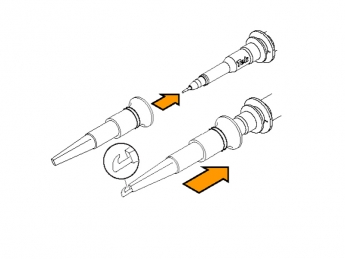 Press the hook tip onto the probe tip and then clamp the hook onto the circuit. Rating: 300 V CAT II