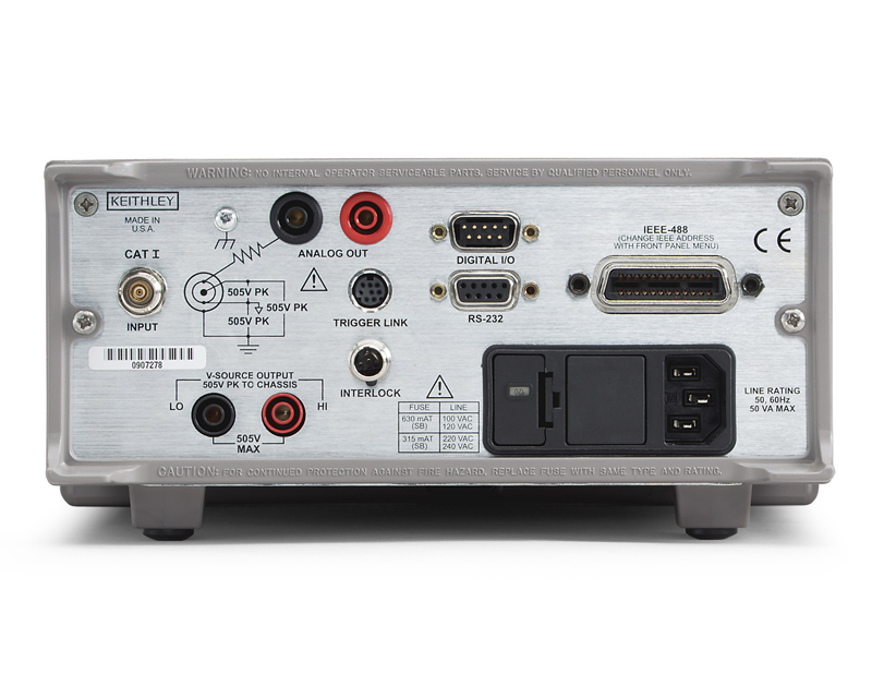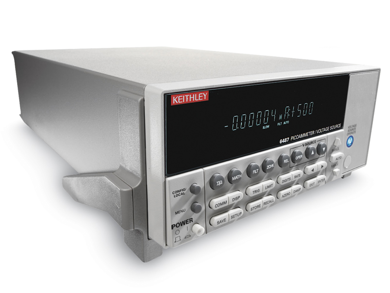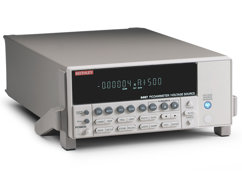 The 5-1/2 digit Model 6487 Picoammeter/Voltage Source improves on the measurement capability of the award-winning Model 6485, and adds a high resolution 500V source. It provides higher accuracy and faster rise times than the 6485, as well as a damping function for use with capacitive devices. With eight current measurement ranges and high speed autoranging, this cost-effective instrument can measure currents from 20fA to 20mA, take measurements at speeds up to 1000 readings per second, and source voltage from 200μV to 505V.