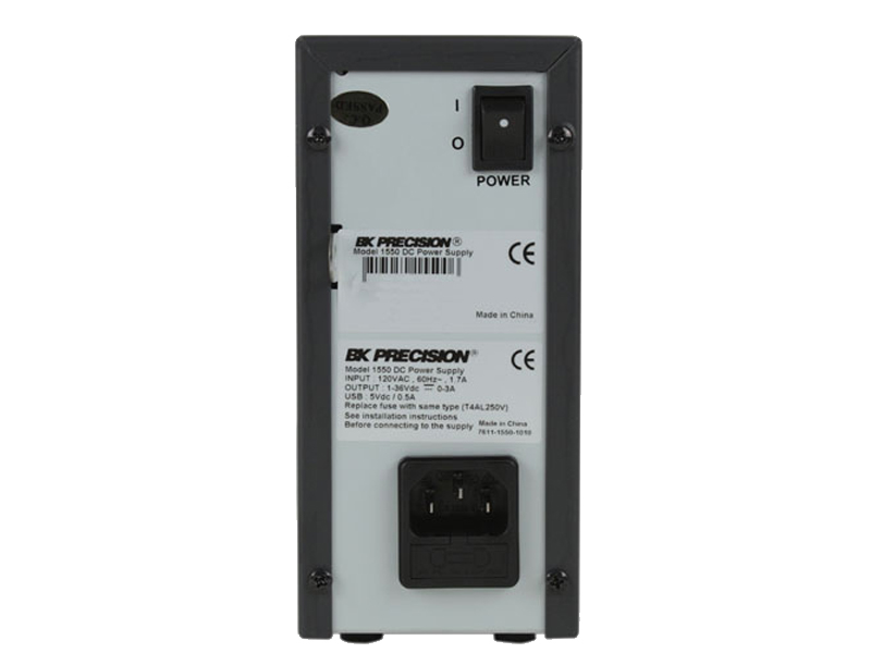 The model 1550 is a compact 108 watt bench power supply delivering 1-36V and 0-3A from its main isolated output. A unique feature of the 1550 bench power supply is the USB charging port located on the front panel allowing the user to charge a cell phone or MP3 player. Clean power and quiet operation make this power supply ideal for laboratories, work shops, and schools where bench space is limited.