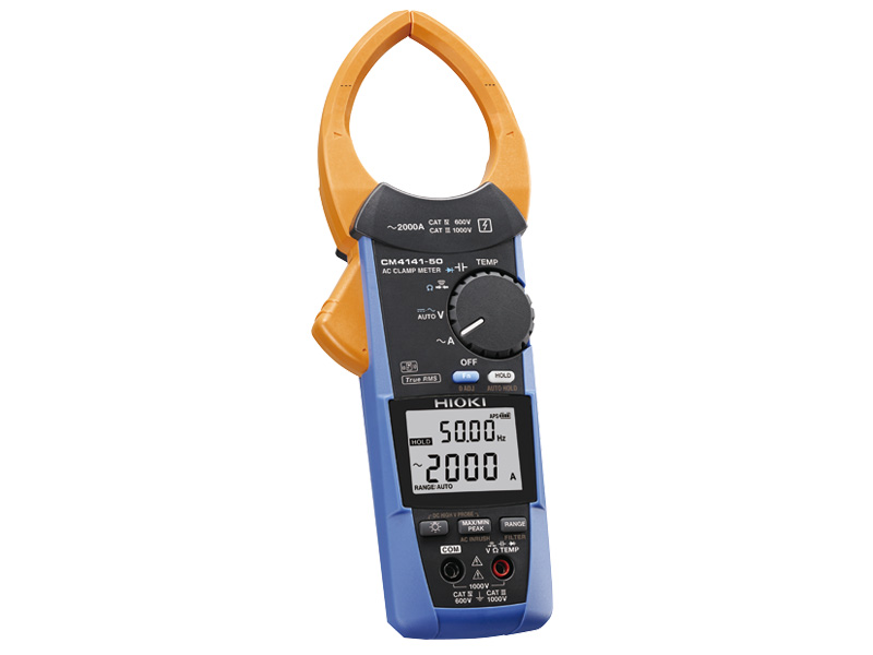Hioki clamp on meters are best-in-class measuring devices incorporating Hioki’s expertise in current sensing technology. The CM4141-50 is a 2000 A AC True RMS clamp meter that features a uniquely designed slim jaw that lets you easily get into the narrow gaps between cables in crowded electrical distribution boxes without fear of damaging the cables or the clamp meter. The high current measurement capability makes it especially useful for industrial applications.