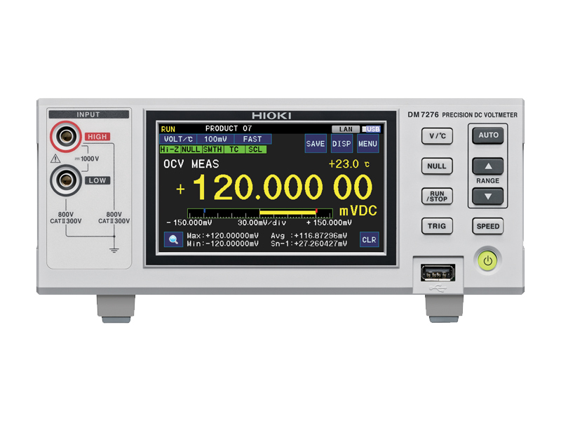 Das Präzisions-DC-Voltmeter DM7276 bietet eine überragende Messgenauigkeit von 9 ppm (0,0009 %), ein Genauigkeitsniveau, das für fortschrittliche Anwendungen wie Alterungstests von Lithium-Ionen-Batterien erforderlich ist. Weitere wichtige Merkmale sind die Kontaktprüfung zur Maximierung der Messzuverlässigkeit, das Binning und die Temperaturkompensation. Damit ist das Voltmeter ideal für die Entwicklung und Herstellung von Lithium-Ionen-Batterien, elektrischen Doppelschichtkondensatoren, Komponenten für Elektrofahrzeuge und anderen Geräten der nächsten Generation.