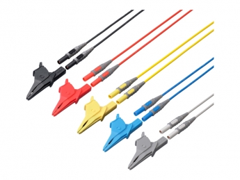 Spannungskabel mit Krokodilklemme rot, gelb, blau, grau & vier schwarze