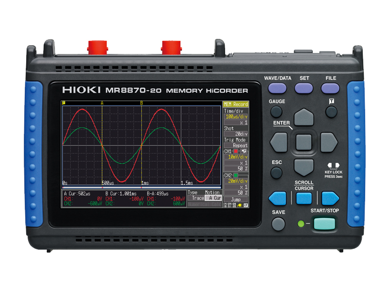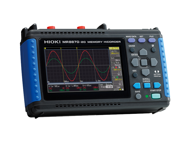 Hioki Memory HiCorder sind Hochgeschwindigkeits-Wellenformüberwachungs- und -aufzeichnungsgeräte, die aufgrund der vollständigen Isolierung zwischen den Kanälen und von jedem Kanal zum Boden mehrere sich schnell ändernde Phänomene gleichzeitig messen können. Der MR8870 ist ein tragbarer Datenerfassungsrekorder mit 2 analogen Kanälen und 2MW Speicher, der sich für die Aufzugswartung, die Analyse von Maschinen-, Motor- und Umrichterfehlern sowie für Tests und Inspektionen eignet.