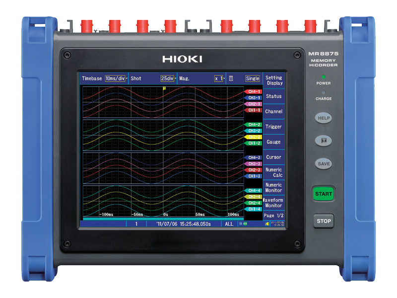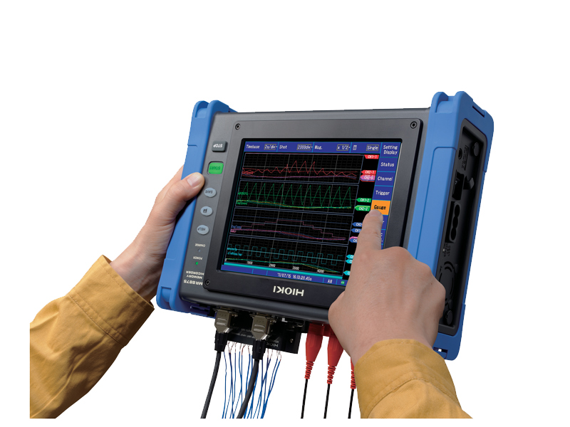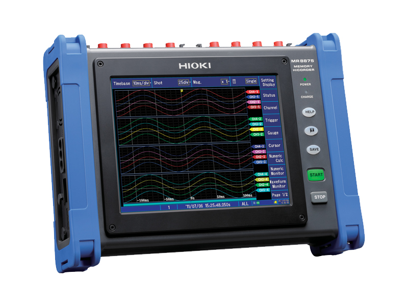 Hioki Memory HiCorder sind Hochgeschwindigkeits-Wellenformüberwachungs- und -aufzeichnungsgeräte, die aufgrund der vollständigen Isolierung zwischen den Kanälen und von jedem Kanal zum Boden mehrere physikalische Phänomene wie Spannung, Strom, Temperatur, Vibration, Gewicht, Beschleunigung und Rotation gleichzeitig messen können. Der MR8875 Datenerfassungsrekorder kann mit Plug-and-Play-Eingangsmodulen ausgestattet werden und eignet sich für Anwendungen wie die Analyse von Fahrzeugen, die Prüfung des Stromverbrauchs tragbarer Geräte und die Messung der Spannungswellenformen supraleitender Materialien und Kontakte.