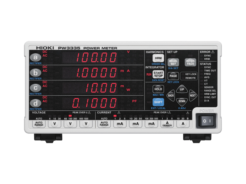 Hioki-Leistungsmessgeräte und Leistungsanalysatoren sind die besten Leistungsmessgeräte ihrer Klasse zur Messung von ein- bis dreiphasigen Leitungen mit einem hohen Maß an Präzision und Genauigkeit. Das PW3335 bietet eine hohe Messgenauigkeit und bewältigt Ströme mit höheren Scheitelwerten in niedrigeren Strombereichen (d. h. hohe Scheitelfaktoren), während die Auswirkungen des Leistungsfaktors minimiert werden, um die Messunsicherheit bei der Leistungsmessung erheblich zu verringern, was besonders kritisch ist, wenn die gemessene Standby-Leistung im μA-Bereich liegt.