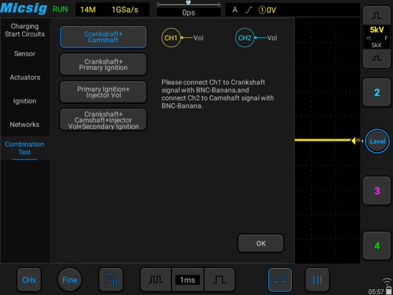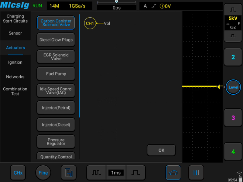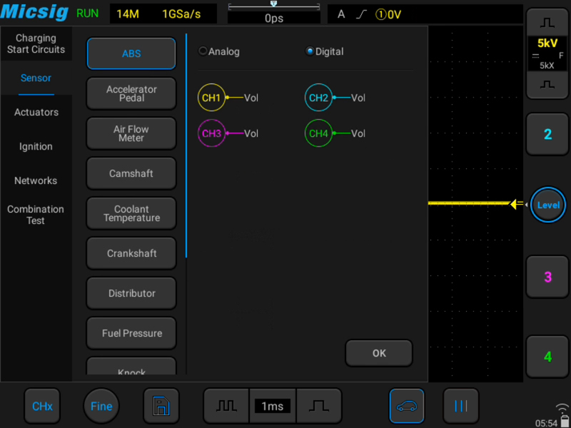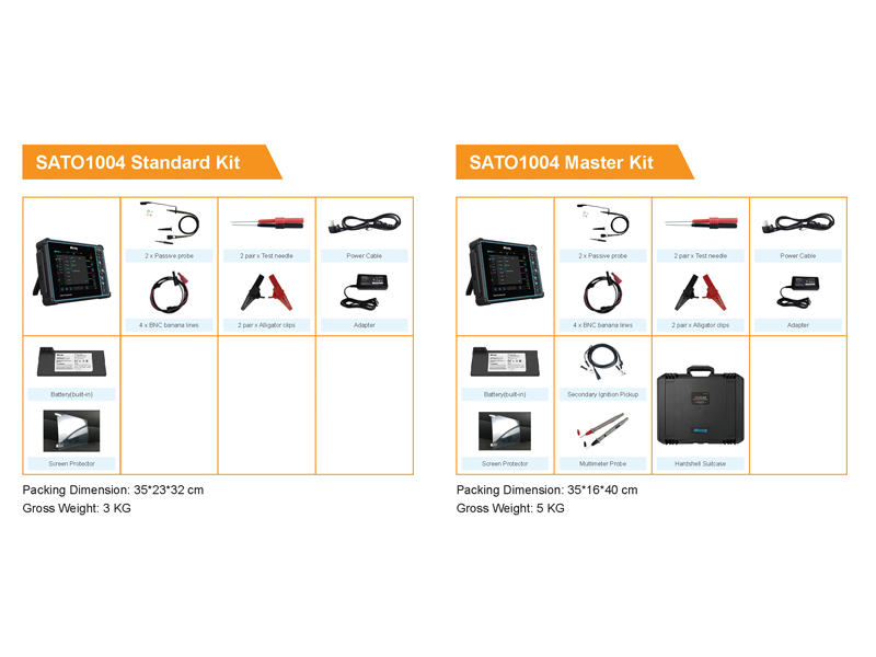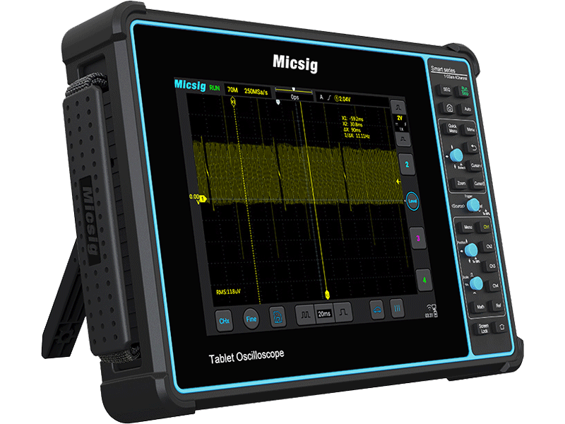 Die Micsig SATO1000-Serie ist speziell für die Fahrzeugdiagnose konzipiert. Es bietet automatische Test-Setups für Zündungstest, Kommunikationstest (inkl. CAN, LIN, Flexray, K, etc.), Drucktest (Zylinderdruck, Ansaug- und Abgasdruck, Kraftstoffdruck, etc.) und Test für Ladeschaltung, Starterschaltung, Sensoren und Aktoren. Die Spezifikationen und Funktionen des Oszilloskops sowie die innovative Touch-Bedienung sind die gleichen wie beim STO1000. Mit den Schnittstellen LAN, WLAN und USB ist das Gerät ideal mit der Aussenwelt verbunden und kann mit der mitgelieferten Software einfach ferngesteuert werden. Für das Live-Streaming auf z.B. einen Beamer ist der HDMI-Ausgang serienmässig vorhanden. Mit der grossen Batteriekapazität und der robusten Bauweise ist das Gerät auch für den Einsatz in der Werkstatt bestens geeignet.