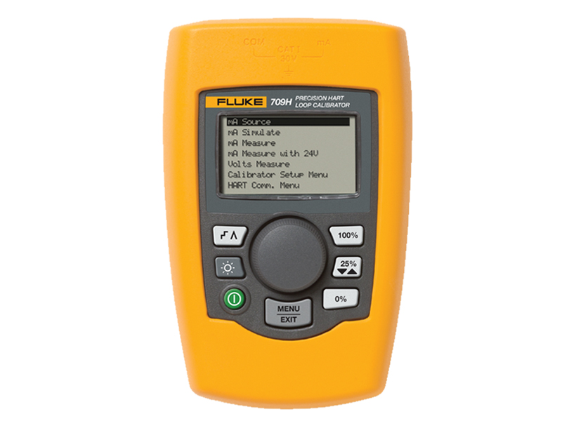 And it's easy to use. The Fluke 709H is built around a user-friendly interface with a Quick-Set rotary encoder knob. This reduces the time it takes to measure or source voltage or current, and power up a loop. The protective holster easily fits into a technician's hand and the large backlit display is easy to read, even in dark, cramped worked areas.