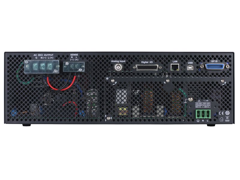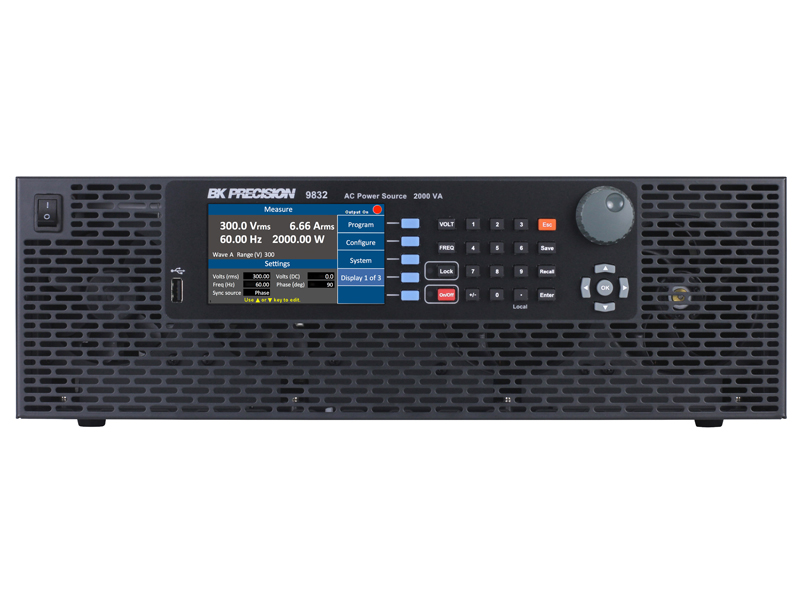 The 9830 Series programmable AC power sources provide high performance and low total harmonic distortion in a 3U form factor. The addition of positive and negative DC offset voltages expands the AC capabilities to operate in DC and AC+DC output coupling modes. The user can select built-in and user-defined harmonic waveforms or select from standard sine, square or clipped sine outputs. The high output current crest factor and low input resistance are suitable for high inrush current measurements when evaluating capacitive or inductive loads.