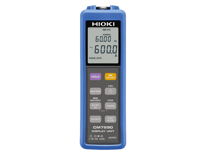 The CM7290 is the display and output unit for the CT7600 and CT7700 series AC/DC current sensors, providing a stand-alone clamp-on meter for field use or enabling waveform signals to be output to a Hioki chart recorder or logger for further analysis.