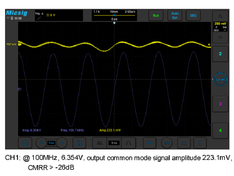 High input impedance and low input capacitance, minimized load effect, greatly improved the accuracy of the differential signal. High common mode rejection capability, able to meet floating measurements of large common mode voltage at high frequencies.