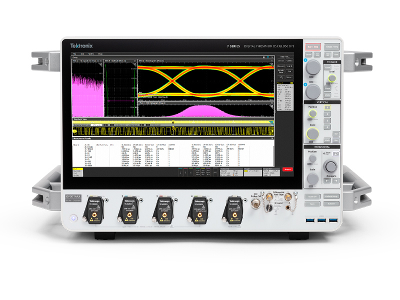 The 7 Series DPO delivers unparalleled signal fidelity, 10-bit ADC, high ENOB, low noise, low jitter, fast measurement throughput, and an award-winning TekScope® user interface making it ideal for meeting the evolving needs of high-speed serial, high-energy physics, and key RF applications.