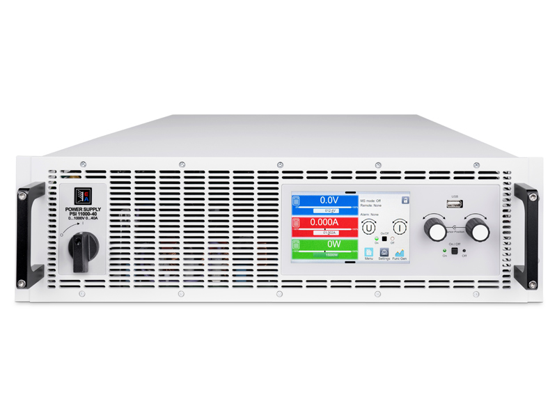 The EA PS and PSI programmable power supplies range in power from 1500W devices up to 30kW in a single chassis and feature 5″ TFT Gorilla® Glass touchscreen displays for intuitive control and test setup. The power supplies can be paralleled for up to 3.84MW in output power at up to 2000VDC.