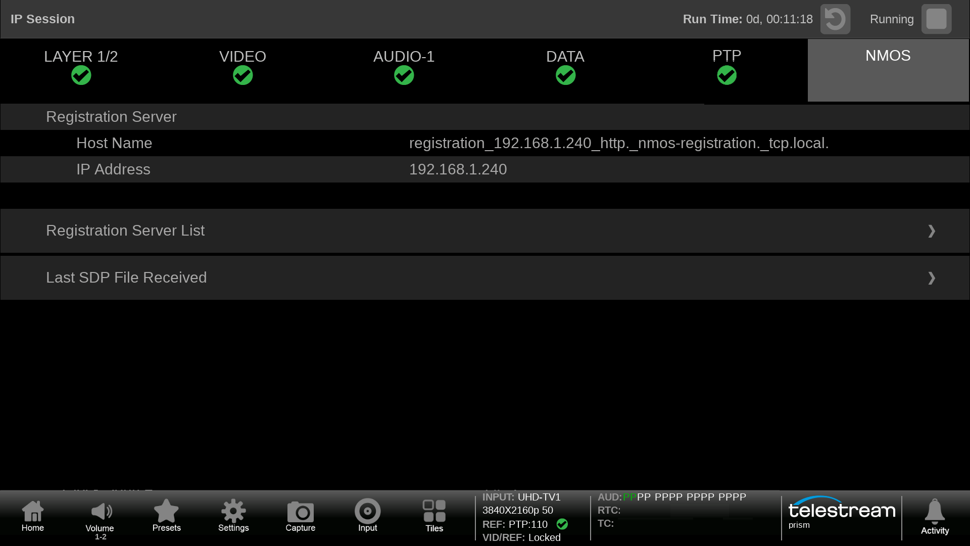 NMOS server address and last SDP file