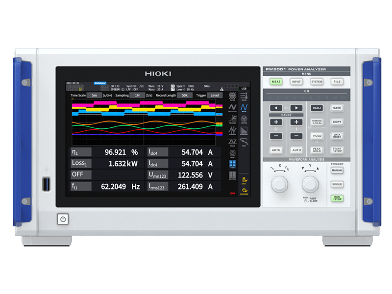 The PW8001 sets a new benchmark for complete power analysis solutions with Hioki being the only manufacturer that offers industry-leading power analyzers and a wide portfolio of high-accuracy current sensors both developed and manufactured by Hioki. This enables to align their performance and results in more accurate and stable measurements from DC to high frequencies and low power factor measurements thanks to functions like the automatic phase shift correction.