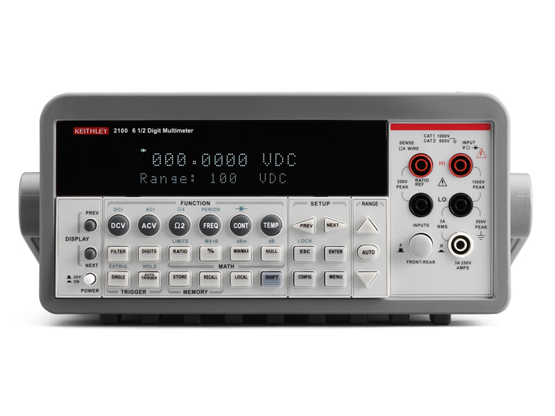 The Model 2100 USB Digital Multimeter is thenewest member of Keithley's family of high performance digital multimeters. Its high accuracy (38ppm), 6-1/2 digit resolution is ideal for critical measurements. The Model 2100 features 11 measurement functions and 8 math functions to easily accommodate the most commonly measured parameters. All accessories, such as USB cable, probes, and software, are included with the Model 2100. With its unique combination of high precision and low total cost of ownership, the Model 2100 is an unbeatable value for R&D engineers, test engineers, scientists, and students making basic precision measurements on the bench and in system applications.