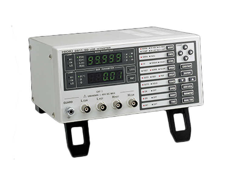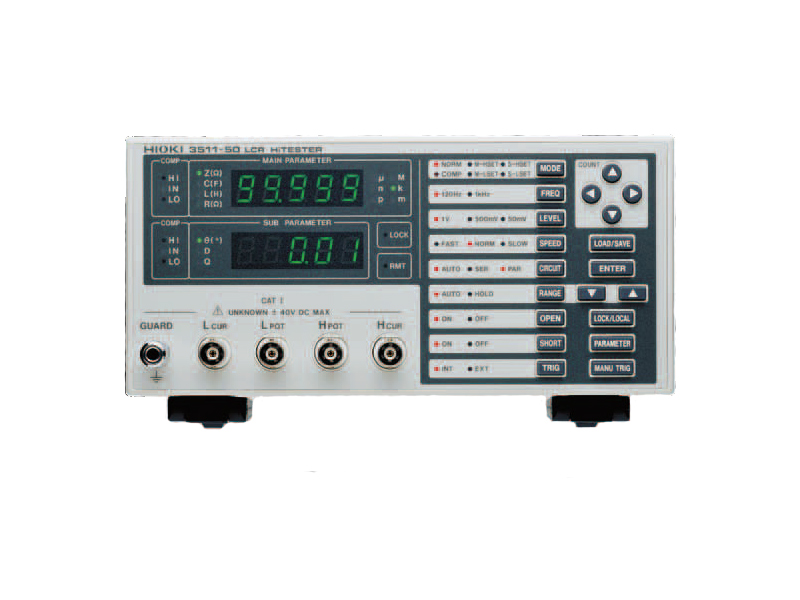 Les appareils de mesure LCR et les analyseurs d'impédance Hioki vont de 1mHz à 3GHz et conviennent à un large éventail d'applications dans le domaine du test des composants électroniques. Le 3511-50 est un mesureur LCR compact à usage général pour les tests embarqués de condensateurs et de bobines utilisés dans les équipements électriques et les dispositifs tels que les composants liés à l'automobile.