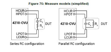 figure, the 4210-CVU can measure the DUT as a series configuration of the resistor-capacitor (RC) or