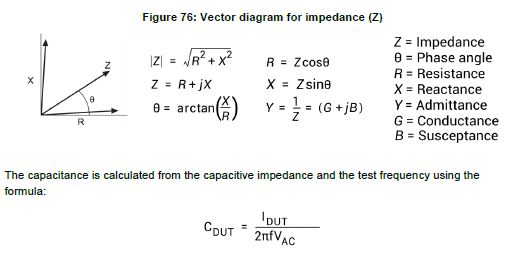 The capacitive impedance (and conductance) are calculated based on the measured AC impedance