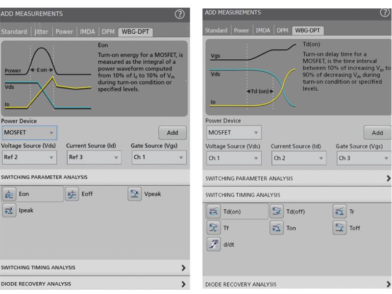 Mesures et analyses pour double impulsion