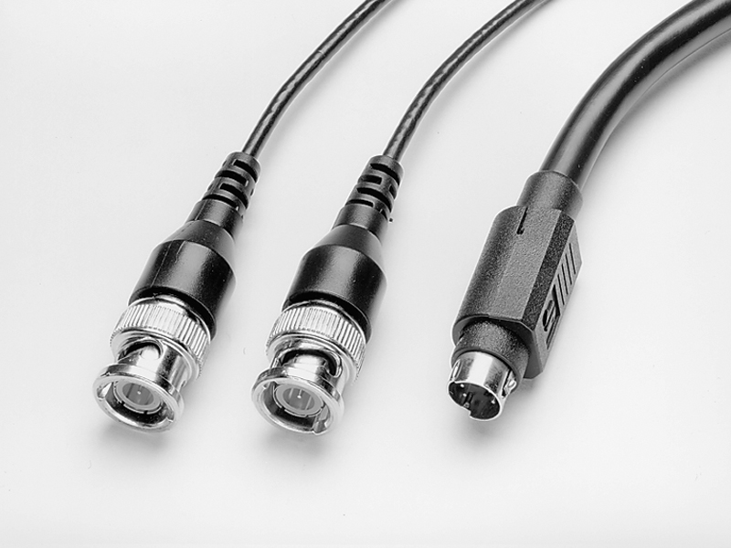 DIN-to-Dual BNC, 1m (3 ft) cable used to connect BNC inputs to any instrument having Trigger Link connectors.