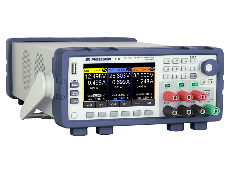 The 9140 Series triple output multi-range DC power supplies combine industry-leading power density and performance with an extensive set of features in a compact 2U form factor. Three isolated output channels each produce 100 W of clean power with low ripple and noise characteristics. Combine channels for up to 300 W total output power.