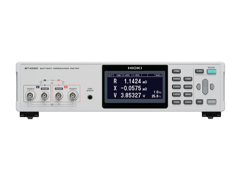 • Low-frequency AC-IR measurement* : Measure the reaction resistance of a battery *The BT4560 ensures battery cell quality by measuring internal impedance at a low frequency of 1 Hz or below