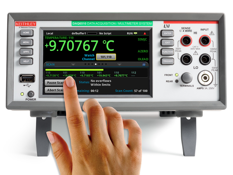 Creating a new level of simplicity, the DAQ6510 has a touchscreen user interface that enables faster setup time, real time monitoring of test status, and detailed data analysis on the instrument.