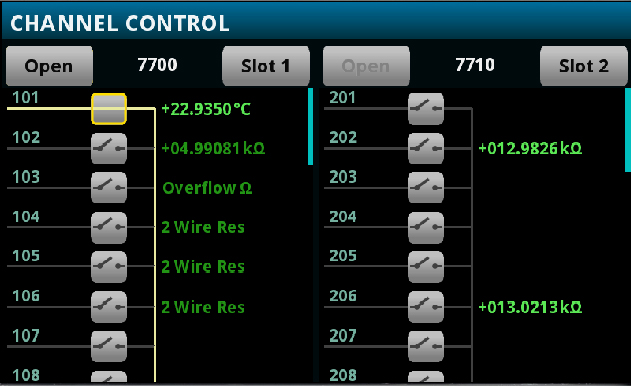 Set up and run a test simply and quickly without having to write a test program. The DAQ6510 Data Acquisition and Logging Multimeter System's intuitive touchscreen provides simple configuration with visual and intuitive test setups, real-time visualizations of scan status for catching problems early to avoid lost test time, and easy analysis of test data.