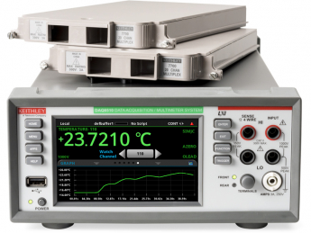 The DAQ6510 is made to measure with 6½-digit resolution and 15 built-in measurement functions. Make low-current, low-resistance, and temperature measurements, and see transient signals with the built-in digitizer.