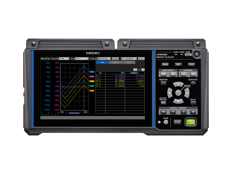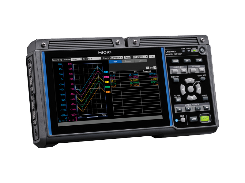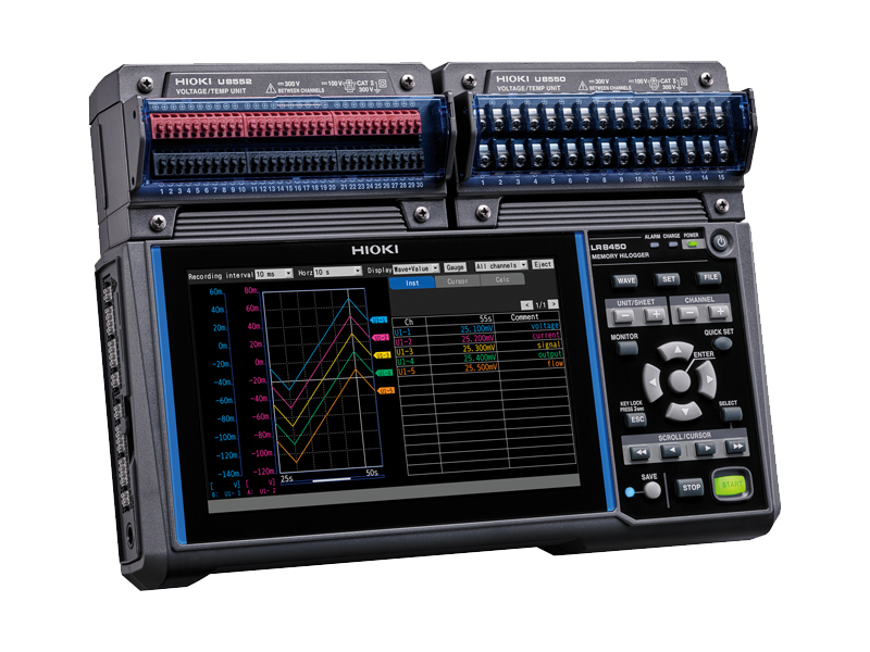Les Hioki Memory HiLoggers sont des enregistreurs de données à grande vitesse permettant d'enregistrer plusieurs canaux de signaux de tension, de température, de résistance ou d'humidité, certains modèles offrant une isolation complète entre les canaux et une forte résistance au bruit. Le LR8450 offre un échantillonnage de 1 ms sur un maximum de 120 canaux et peut être associé à 5 types différents d'unités d'entrée enfichables. De nouveaux modules d'entrée mesurent la déformation et la distorsion, ce qui est idéal pour les applications automobiles impliquant l'évaluation de composants de véhicules et d'équipements robotiques.