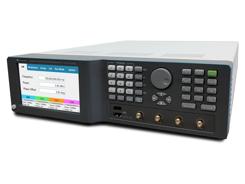 The Benchtop version of the Lucid series offers up to 4 phase coherent channels in a 2U 19” benchtop box. With a 5” touch display and front panel control buttons the Benchtop platform enables users to program the instrument without the need of an external PC. For synchronized, phase coherent, multi-channel applications such as quantum physics and phased array antennas the Benchtop platform is an ideal, high performance and cost-effective solution.