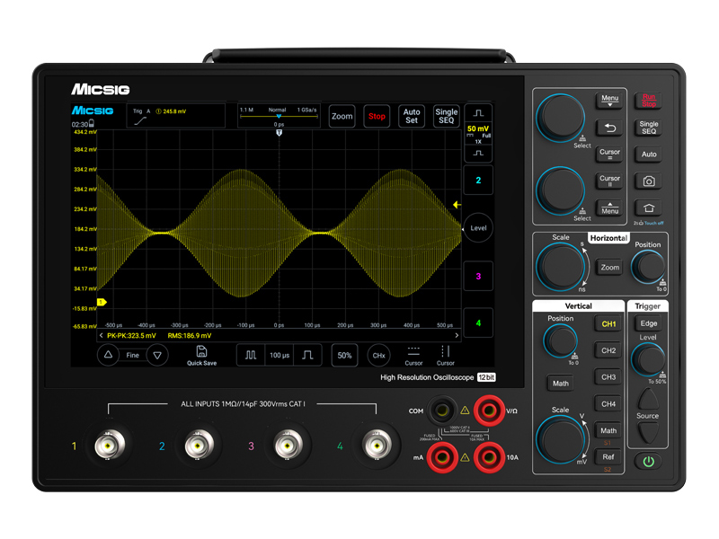The MHO1 series utilizes a 12-bit high-resolution ADC, offering up to 4096 quantization levels, which is 16 times that of a traditional 8-bit ADC. This allows users to observe waveform details more completely and clearly.